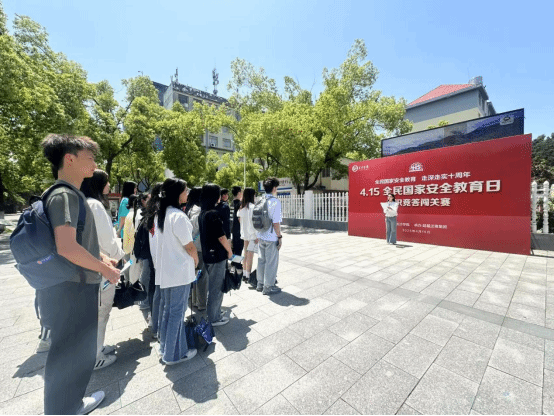2025年4月15日中午,长沙学院勤思广场上气氛热烈,第十个“全民国家安全教育日”知识竞答决赛在此举行。活动以“全民国家安全教育,走深走实十周年”为主题,由长沙学院主办、超星泛雅集团湖南分公司承办,吸引了线上线下师生广泛参与。