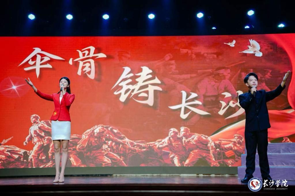 决赛中,彭淇、张文韬(指导老师:刘晗)以《伞骨铸长沙》为题激情演讲。他们以爱国将领彭士量的故事为切入点,娓娓道来,展现了湖南人心忧天下、敢为人先、勇于担当的血性精神,并结合当下时代使命、大国自信、强军兴军、青年责任等维度,阐释了自己对国防教育的理解,宣扬了青年学生积极参与国防宣传的决心,让观众充分感受到了长大学子的拳拳爱国之心。